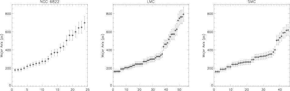 Magellanic Clouds, sorted in ascending order, were used along with