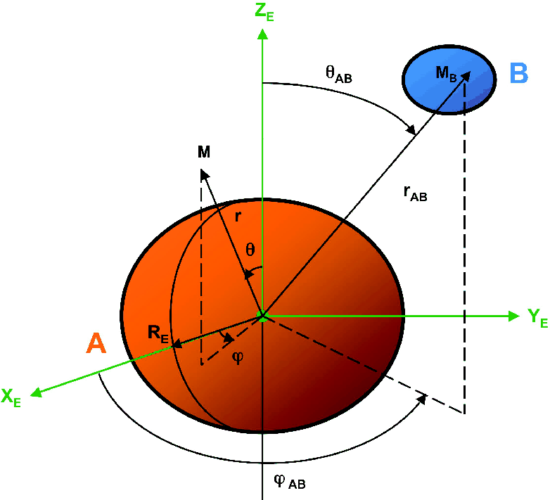 are the coordinates of the center of mass of the potential extended perturber B. ![\begin{figure}