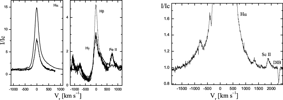 m band. Their presence was interpreted as a possible manifestation of the receding part of the outflow. They suggested that the star is