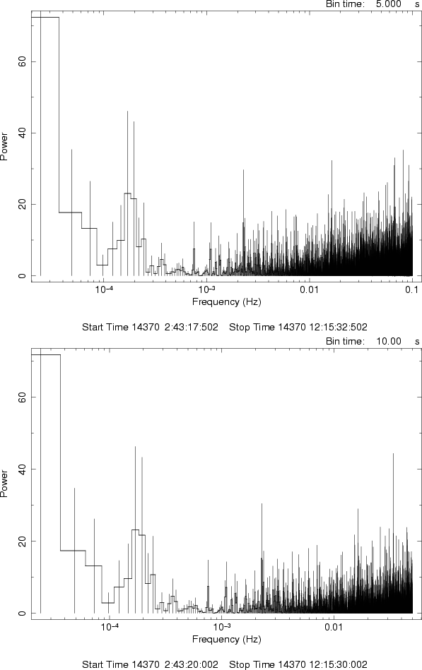We searched the data for pulsations over a wide period range using efsearch and powspec within the package XRONOS