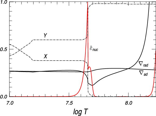 temperatures exceeding 108 K, a convective core develops once central helium burning gets sufficiently strong. Finally, it is informative to realize that in the