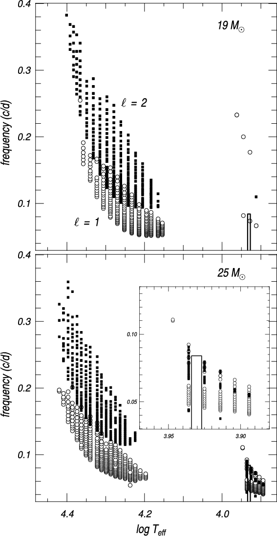 Cyg variables which still live within the main-sequence domain (see Fig. 1) and which were explicitly added to the class by van Genderen (1989) because of their comparable photometric variability signature do not fit into our mode trapping model. Even if their photometric variability is like that of the post main-sequence variables of the class of the