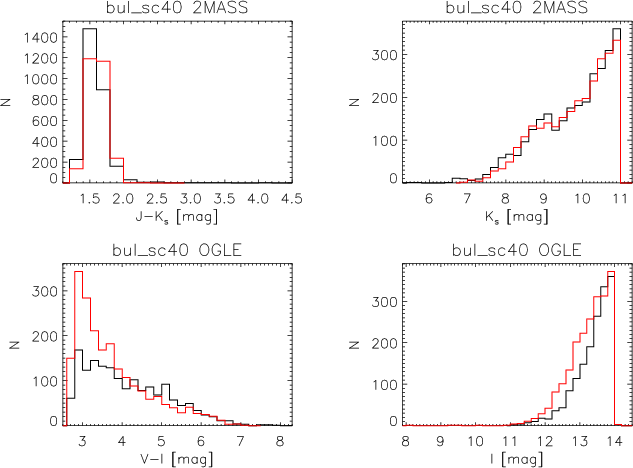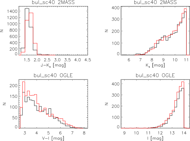 The paper is organised as follows. In Sect. 2 we give a resume on the models and parameters generally used to study the GB, the star formation rate, and the metallicity distribution of the GB. In Sect. 3 we give a brief introduction to the galaxy model used in this work. Section 4 is dedicated to the observational data used. Section 5 explains the method used and Sect. 6 discusses the results derived using this method. Section 7 discusses the results using the same method if only the red clump stars are used. In Sect. 8 we summarise and come to the conclusions.