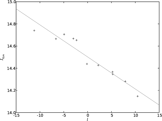 In these formulae, am represents the scale length, a0 the inner truncation length, and f0 is the stellar density per kpc3 of the bulge. The axis-ratios of the bar are given by: