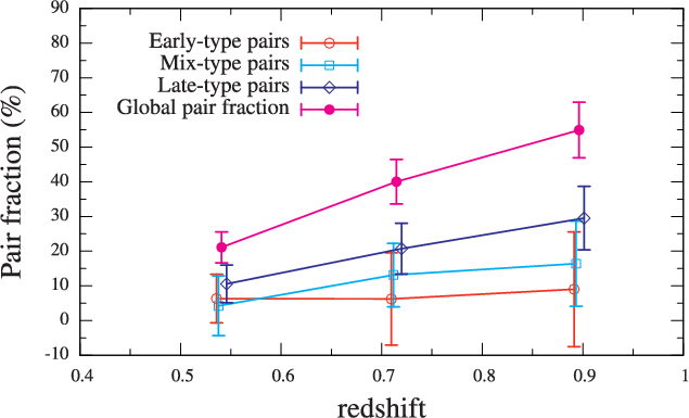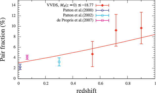 thus, the pair fraction evolves as (1+z)m with m = 4.73