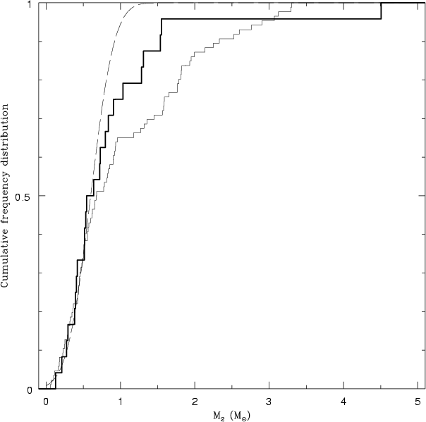as expected for white dwarfs. The latter property has been shown to hold as well for open-cluster binaries involving K giants, for which a lower bound on the companion mass may easily be set.