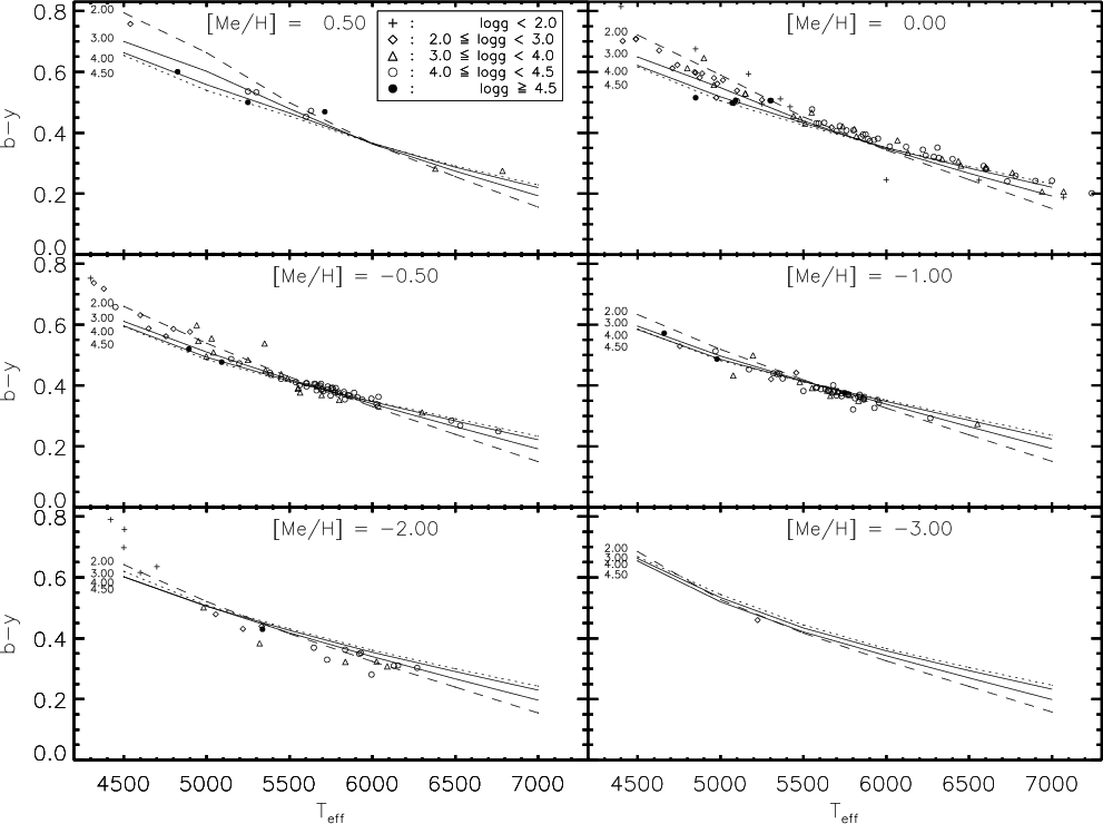 discussed their shortcomings for late-type stars. uvby colours for new