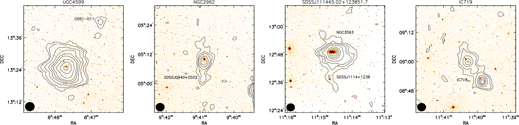 cm-2) discs or rings in rotation (Oosterloo et al. 2007; van Driel & van Woerden 1991). The regular kinematics of these structures suggests that they are relatively old and long-lived (a few Gyr). H I tails or clouds offset from the optical counterpart are also found in some systems (Oosterloo et al. 2007; Morganti et al. 2006) which is indicative of recent interactions or of a gas accretion process.