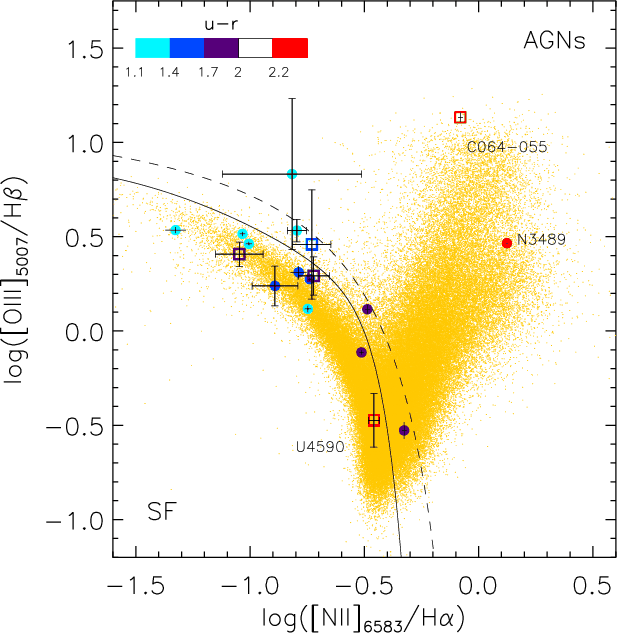 emission lines (Gallagher et al. 2005), as well as IC 719, thus we do not display these objects in Fig. 6, even though the [NII]6583/H