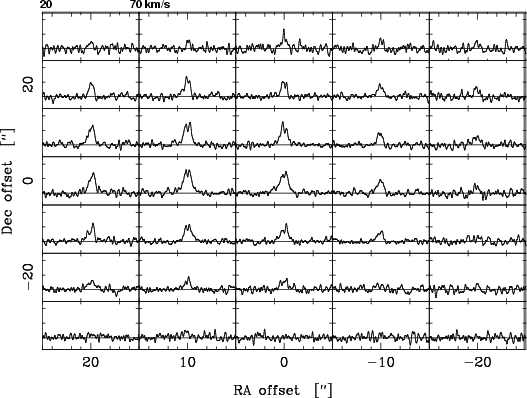 time was 72 s. per pointing. Additionally we observed 13CO J=3-2 at