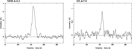 The velocity resolution was 0.11 km s-1 and the half-power beamwidth (HPBW) was 22