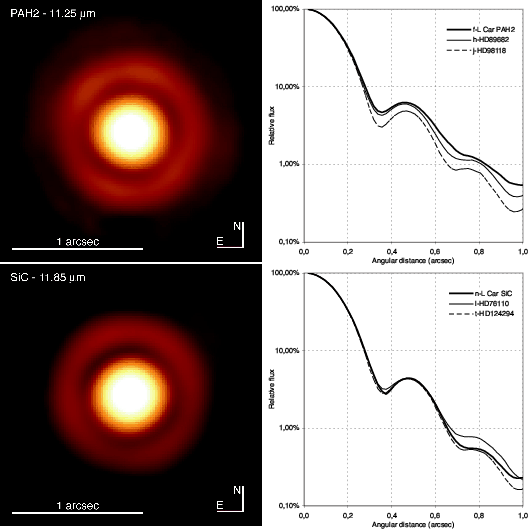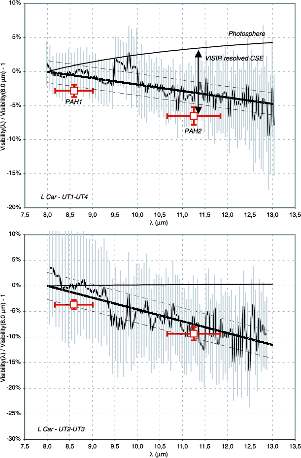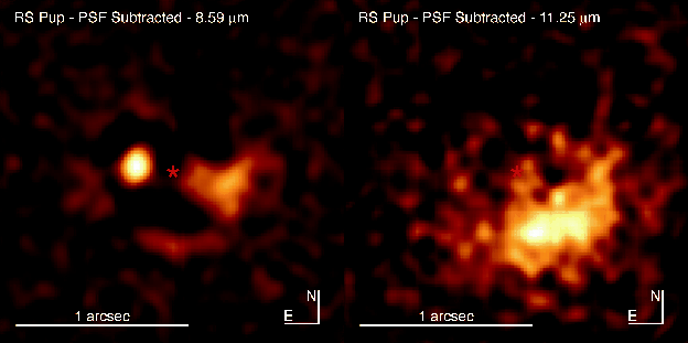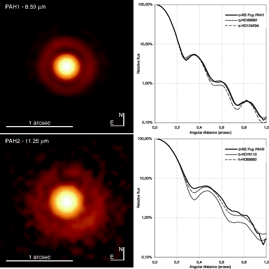 Car appears much more compact, and is resolved only in the VISIR and MIDI observations. The infrared excesses we detect around RS Pup and