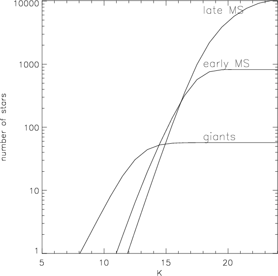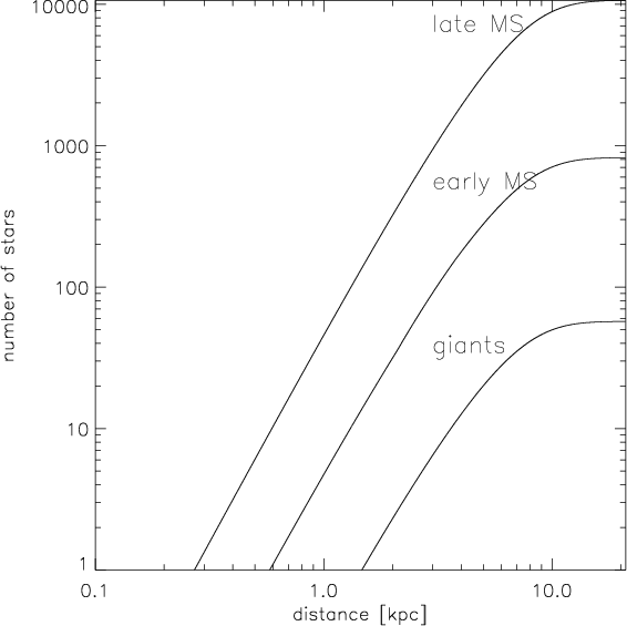 the Galactic plane, is small. As will be discussed below, giant stars cannot be excluded on the same grounds, and we