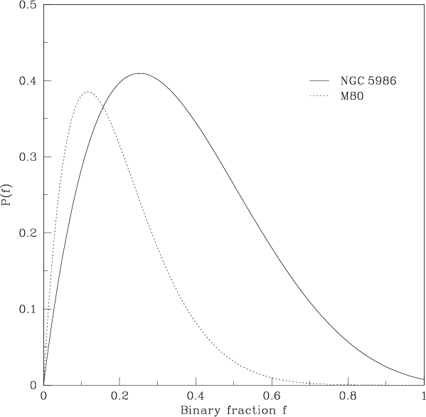 Conclusions. Our results show that the deficiency of close binaries among EHB stars is now confirmed in two, and possibly three, globular clusters. This feature is therefore not a peculiarity of NGC 6752. Our analysis also proves that the strangely high spectroscopic masses among EHB stars are now confirmed in at least a second cluster. Our results confirm that f could be a function of the age of the sdB star population, but we find that recent models have some problem reproducing all observations.