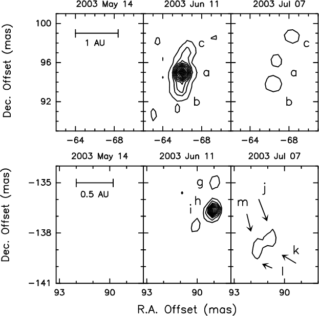 spots, at about 430 AU in the SE direction (+1405 mas, -1235 mas).