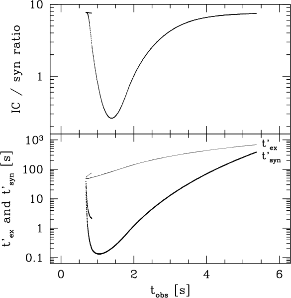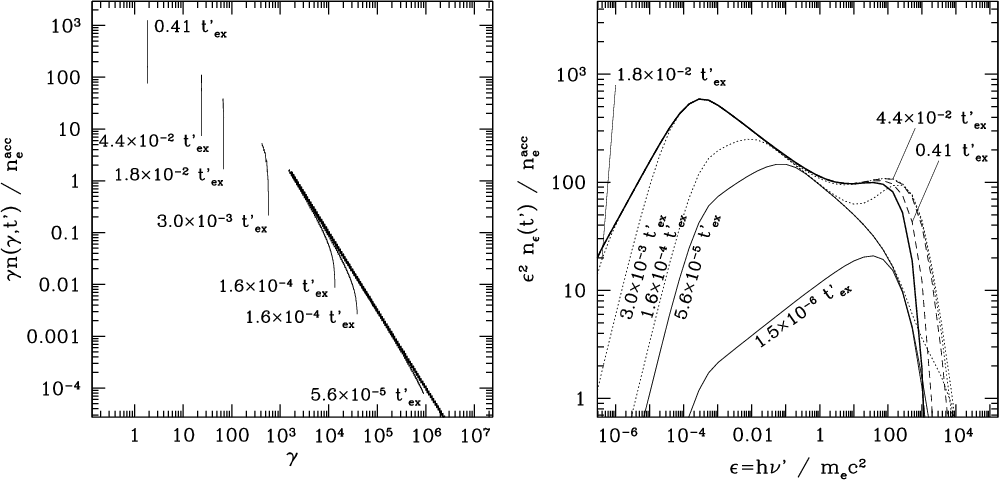 relativistic electrons. This evolution is governed by several radiative processes that are in competition with the adiabatic cooling due to the spherical expansion;