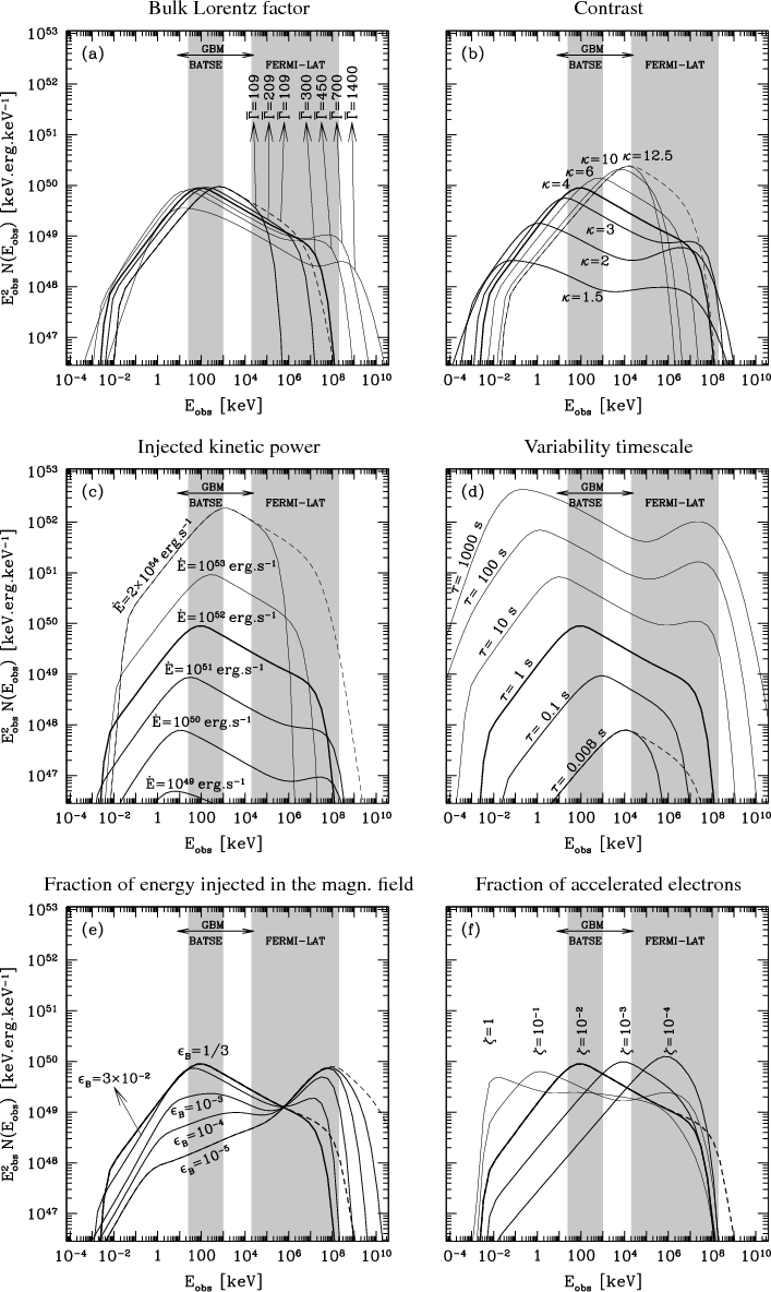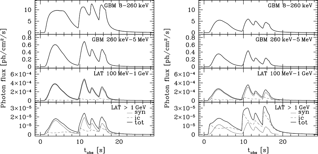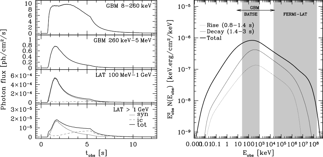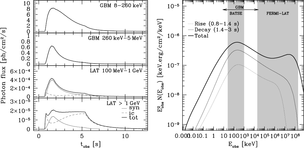 synthetic bursts (lightcurves and spectra) and discuss how the comparison between the LAT and the GBM lightcurves and the observed spectral evolution in Fermi bursts are also powerful tools to better constrain the physical processes at work in GRBs. Section 6 summarizes the results of this study.