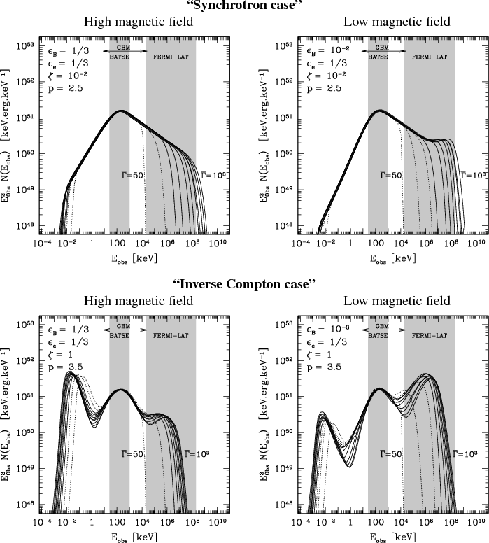 Thus observations of the GRB spectrum extending to very high energy emission (GeV ranges) can be expected when the keV-MeV photons are inverse Compton scattered (provided that the
