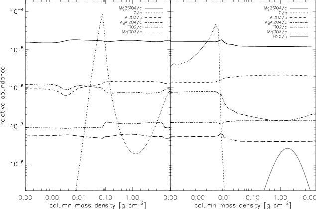 with R=0.094 AU and the right one for R=0.290 AU. Forsterite