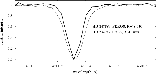 Figure 8: A comparison of the width profile of the CH 4300 Å feature toward two stars (HD 147 889 and HD 204 827) with almost the same spectral resolution. |