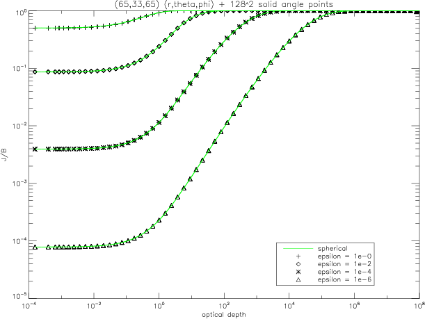 for the line transfer tests in spherical coordinates with