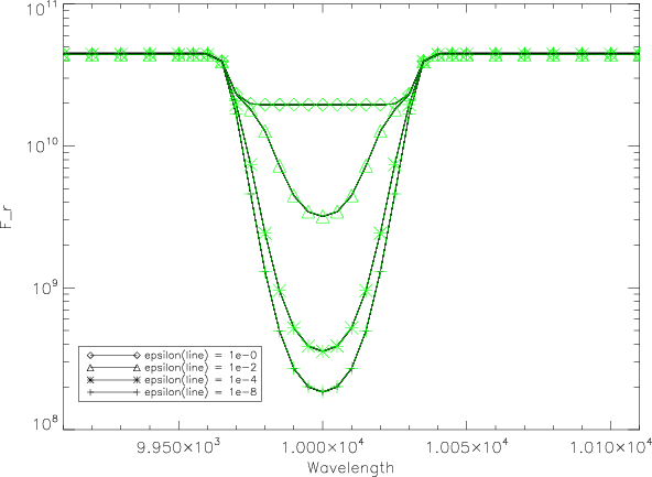 The line of the simple 2-level model atom is parameterized by the ratio of the