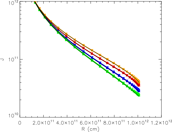 as function of distance from the center for both the 1D and the 3D solver we again found excellent agreement.