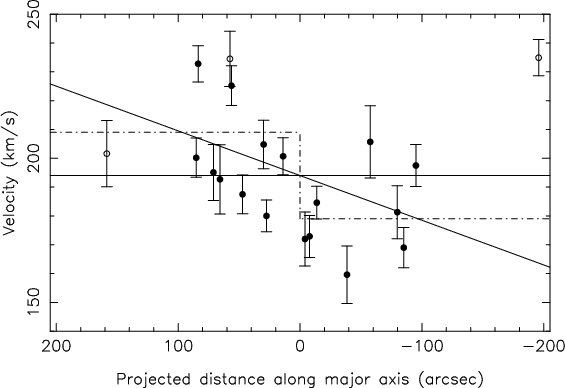 at the reliable limit of our data. Our systemic velocity corresponds to a receding velocity from the barycentre of the Local Group of