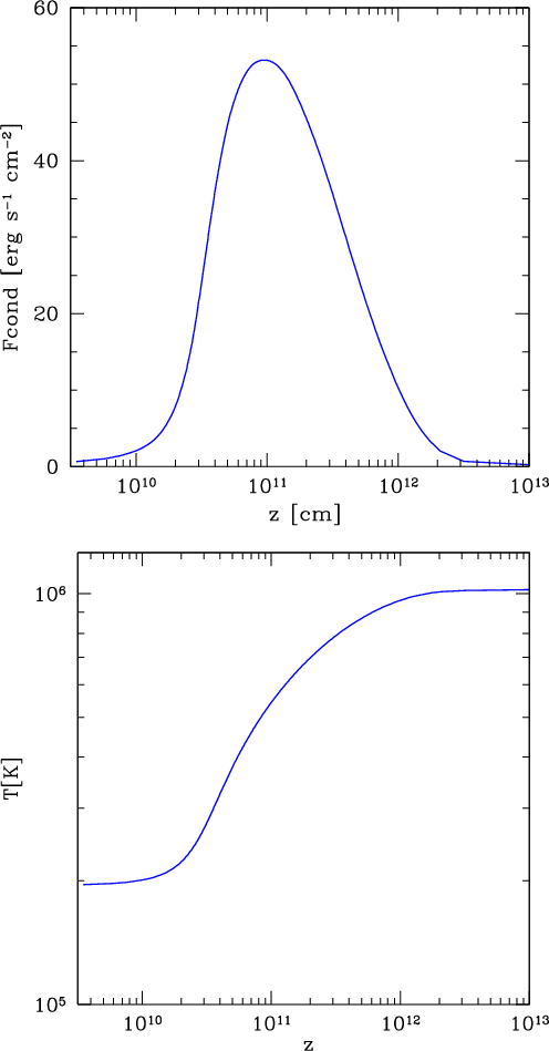 A question remains whether such a narrow zone can exist and be stable. The first issue is related to the mean free path of electrons. In the likely presence of a weak magnetic field, this seems to be possible. The mean free path of an electron for a micro-Gauss magnetic field is a fraction of a cm, much smaller than the size of the transition region. The stability issue is another problem. A study e.g. by Rózanska (1999) in the context of disk/corona border indicates marginal stability; however, a magnetic field may also reduce heat conduction, and in this case we may strongly overestimate the conduction flux. The issue was discussed in other astrophysical contexts like wind collisions, but the theory is rather complex and uncertain. Recent Chandra observations of a planetary nebula PN BD+30