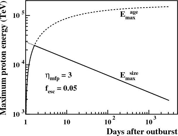 For simplicity, I shall use the self-similar solution to model the hydrodynamic evolution of the SNR (Sect. 2.5). The radius of the forward shock,