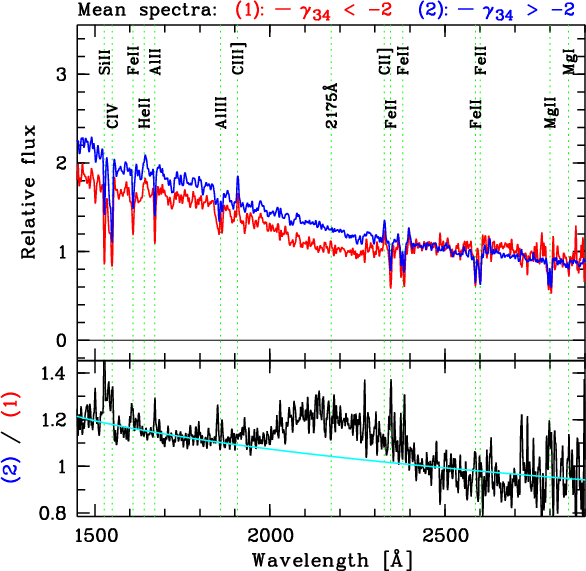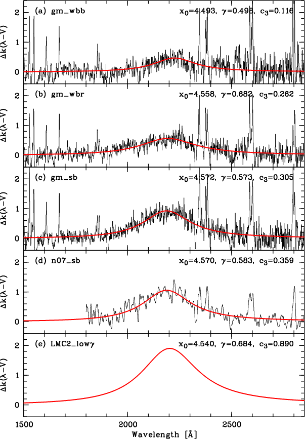 - A region across the UV bump of width 900-1000 Å is masked to avoid even faint wings.