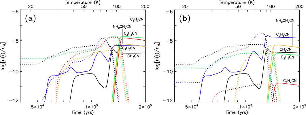 The detection of new complex molecules places valuable constraints on the chemical models. In the context of the model employed, e.g., by Garrod et al. (2008), obtaining abundances of structurally-related molecules allows one to isolate the chemical behavior of the functional groups from which they are constructed, and to relate these back to more fundamental model parameters such as photodissociation rates, binding energies, and initial ice composition. Such an approach then allows further observational predictions to be made.