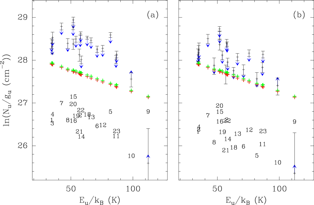 level. In Sgr B2(M), the corresponding numbers are 42, 53, 23, and