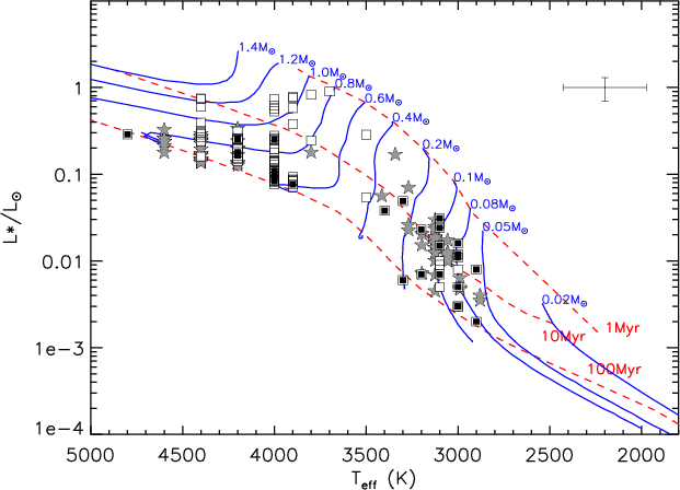 (30-50 Myr; Basri et al. 1996; Mermilliod 1981; Stauffer et al. 1998; Barrado y Navascués et al. 1999,2004), and insignificant