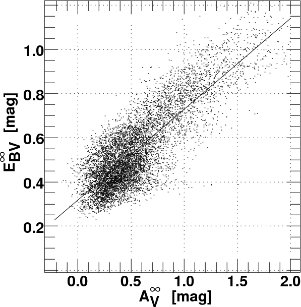 -intercept (0.32 mag) and slope (0.41) indicate