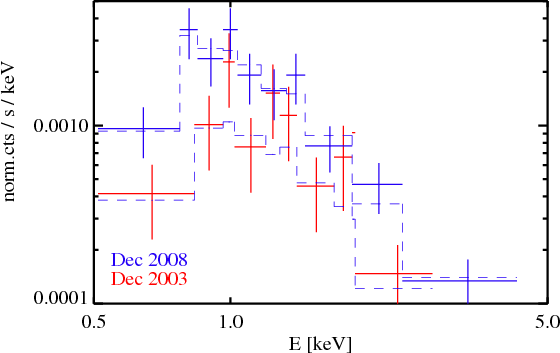 However, the analysis of the soft-band image from 2008, where continuously extended soft emission