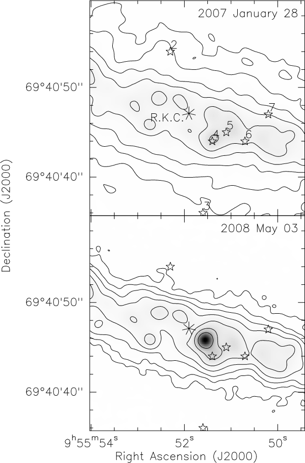 and BB255 on 2007 January 28, 2008 May 03, and 2009 April 08. The total observing time in each epoch was 12 h. We