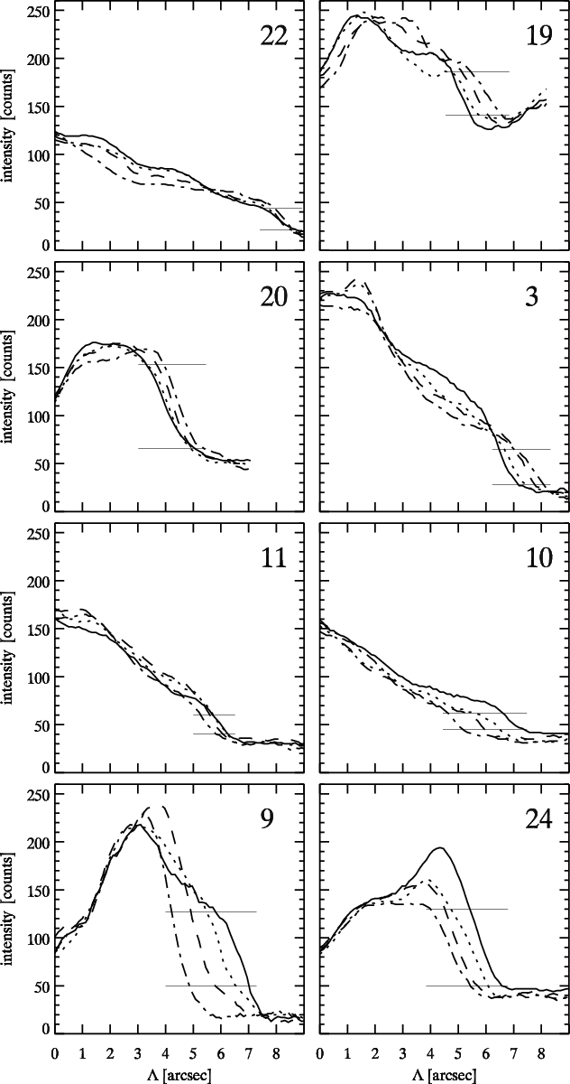 Intensity profiles along the longitudinal axes of the Ly