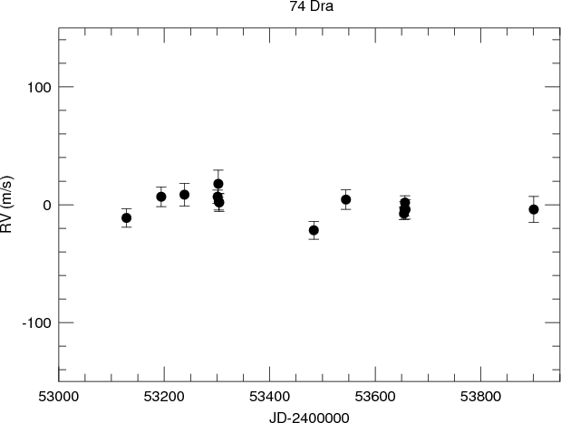 Results. Our measurements reveal that the time series of the radial velocity of 42 Dra shows a periodic variation of 479.1 days with a semiamplitude of K = 112.5 m s-1. An orbital solution yields a mass function of f(m) = (