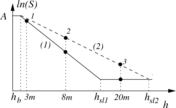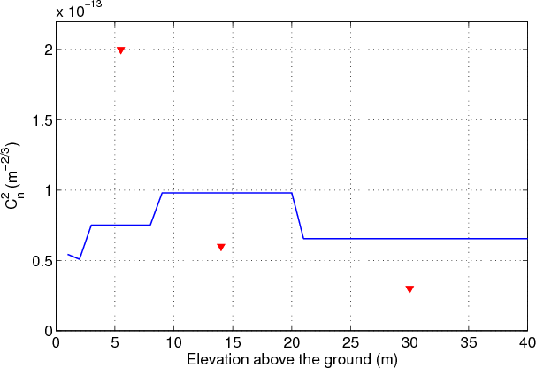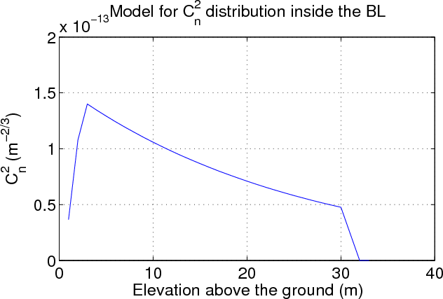 We modelled the function Cn2(h) by a piecewise function equal to a negative exponential law in the interval