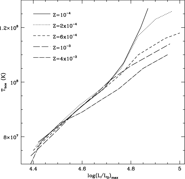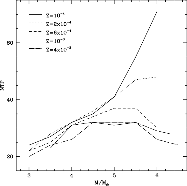 intermediate (Z=0.001) and higher (Z=0.004) metallicities.