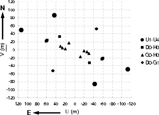 m). Twelve measurements of the object were used for the data processing. The data recorded with the UTs were in SCI_PHOT mode (i.e. with simultaneous photometry), and the ATs ones in HIGH_SENS mode (with photometry recorded subsequently, leading to an increase the errors). Further reference for one particular observation will be given within the number of observation listed in the first column of this table enclosed by brackets.