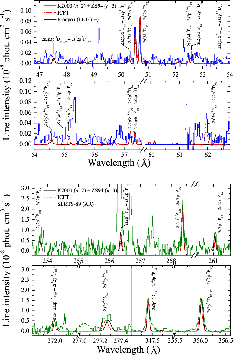 approach, as described in Sect. 2. We then investigate the reported discrepancies between observed and predicted line intensities in the solar and Procyon coronae in Sect. 3. In Sect. 4, we estimate