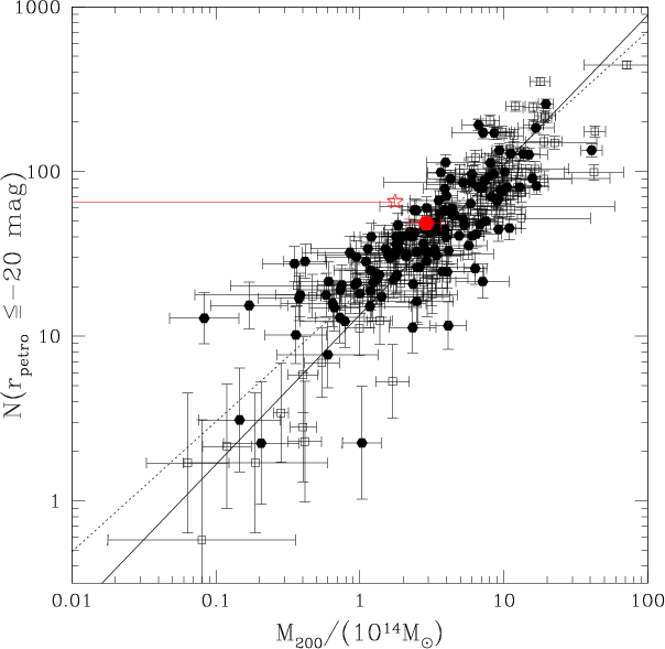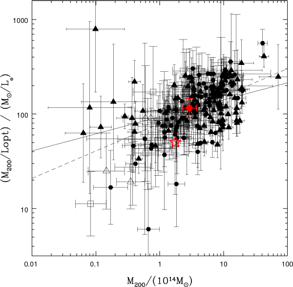 and virial mass (or an optical mass proxy such as