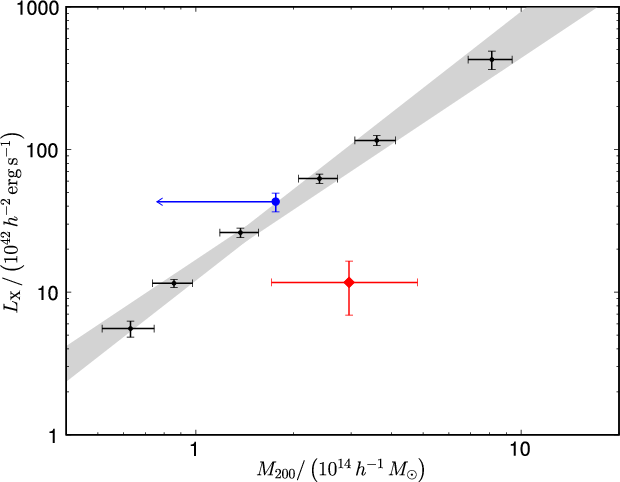 between their optical mass estimates and their X-ray luminosities