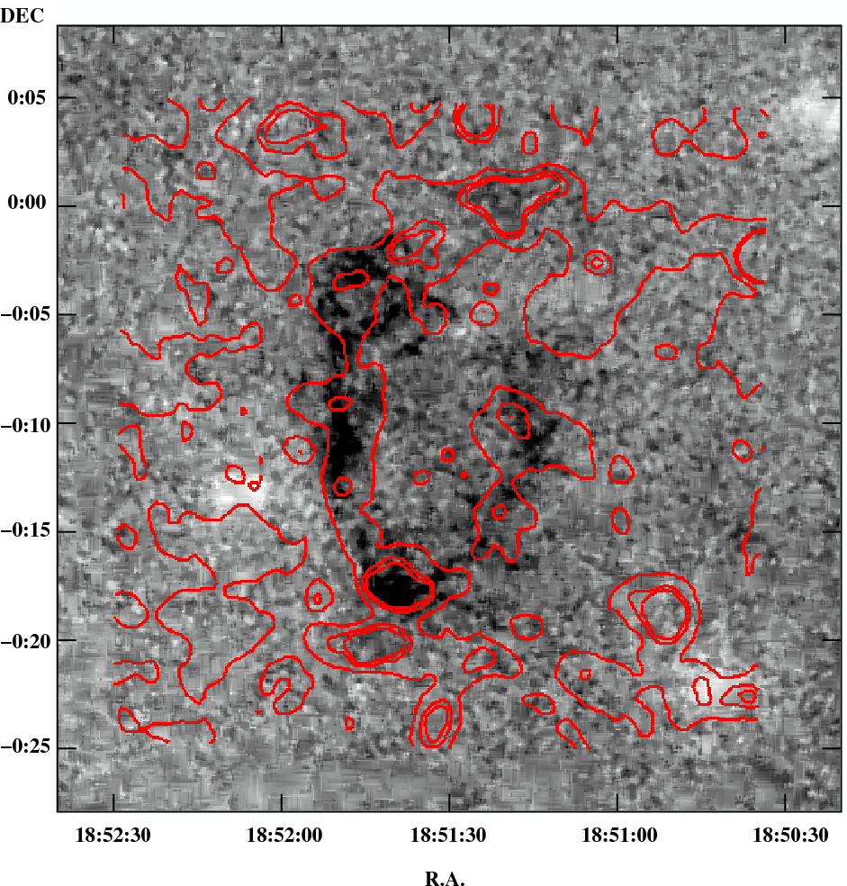 10-17 erg s-1 cm-2 arcsec-2, while from VGPS H I images the distance to