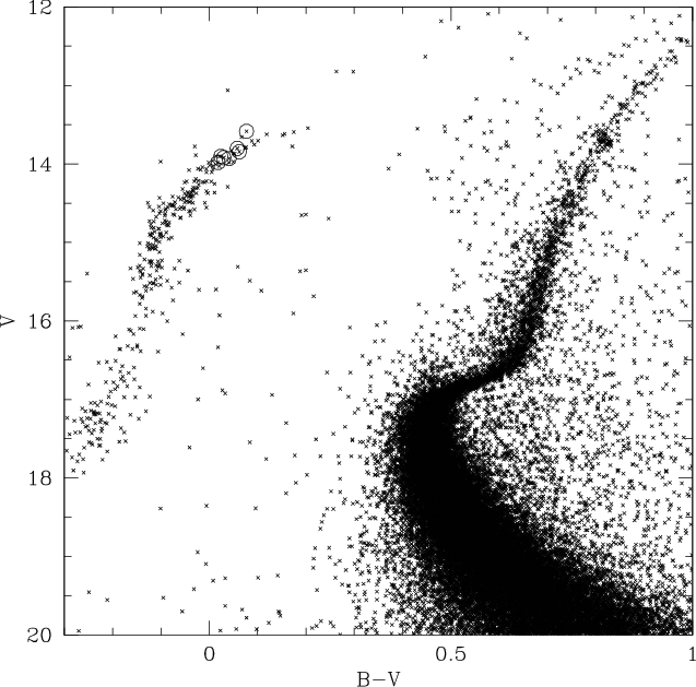 Figure 1: The CMD of NGC 6752 with the observed BHB stars indicated as open circles. |