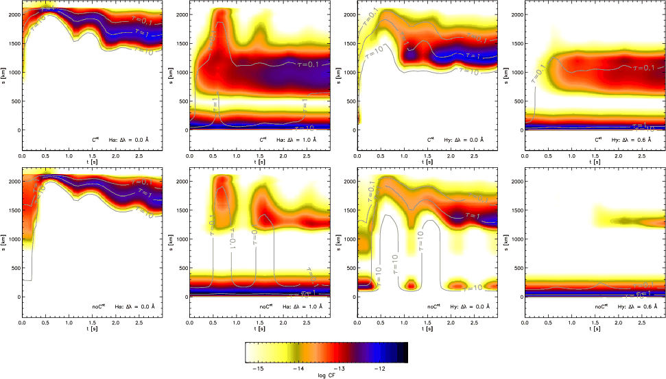 - time evolution of the ionisation structure and formation of optical emission in the chromosphere and photosphere where non-LTE conditions apply.