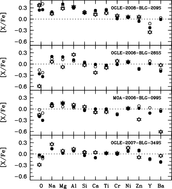 A year later, Johnson et al. (2008) presented a detailed abundance analysis of MOA-2006-BLG-099S, another microlensed Bulge dwarf star. This object was at the time of observation magnified by a factor of approximately 110, and a spectrum was obtained with the MIKE spectrograph on the