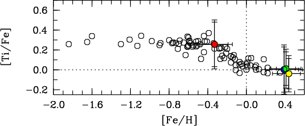 provide some surprising results, contradicting the results based on giant stars. First, it is clear that all three are unusually metal-rich. The star analysed by Johnson et al. (2007), at a metallicity of